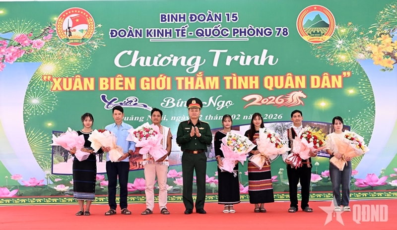 Corps 15 presented more than 5,000 gifts to policy beneficiary families, poor households, ethnic people, and workers across Quang Ngai province, with a total value exceeding VND 3 billion. Specifically, Unit 78 alone delivered over 2,500 gifts worth more than VND 1 billion, helping to share difficulties and encourage local people to welcome spring and celebrate Tet.