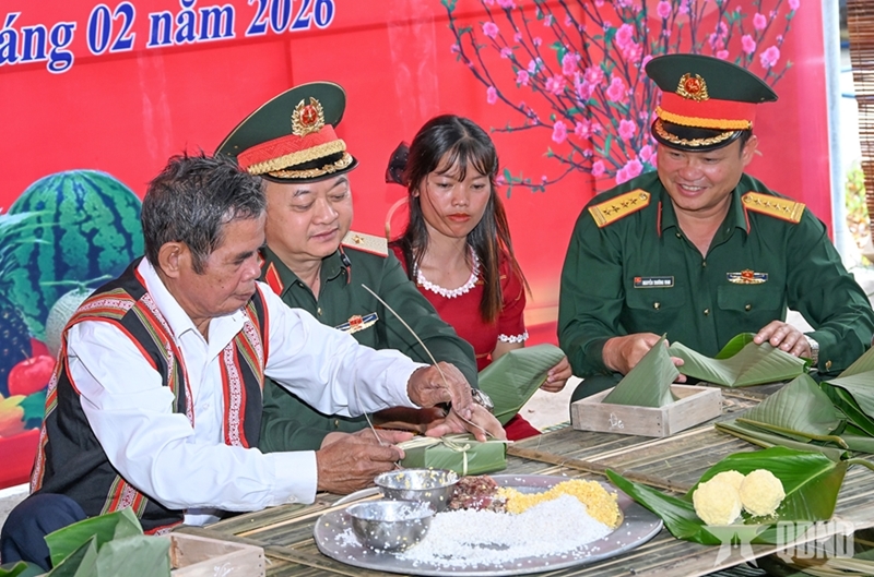 Y Mao, a Ro Mam woman from Le village, joined Unit 78 personnel in a festive competition. “Each year, Le village residents and neighbors participate in banh chung contests, folk games, and cultural exchanges with the soldiers,” she said. “Celebrating Tet together allows us to fully enjoy the warm, joyful atmosphere and traditional flavors of spring.”