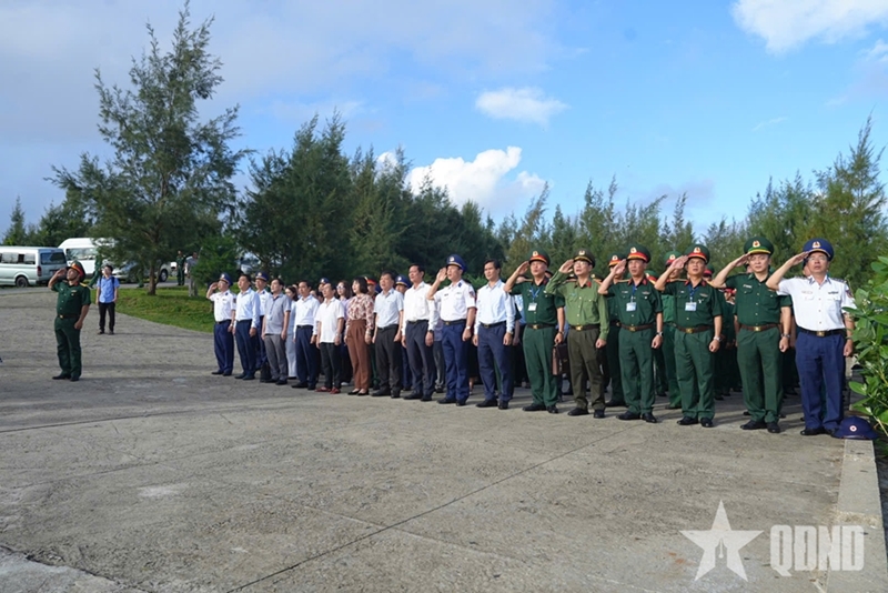 The delegation, including representatives from localities, and crew members of Ship 390 under the Coast Guard Region 2 Command offered flowers and incense in tribute to the heroic martyrs of the “no number ships” at Point C43B, Quy Thien beach, Khanh Cuong Commune, Quang Ngai Province, and held a flag-raising ceremony at the Ly Son Flagpole, a sacred symbol of national sovereignty.