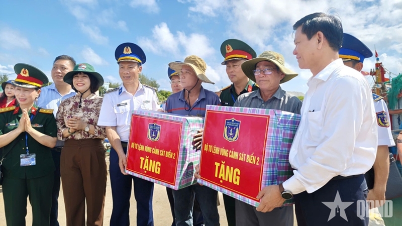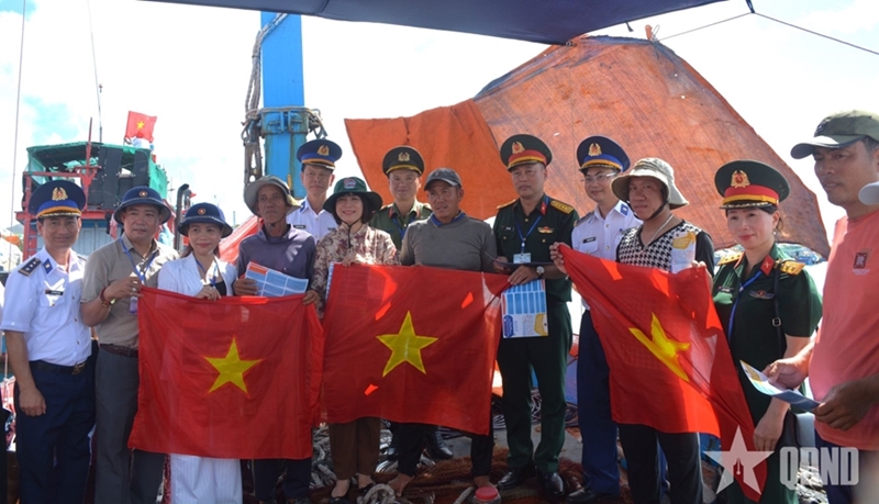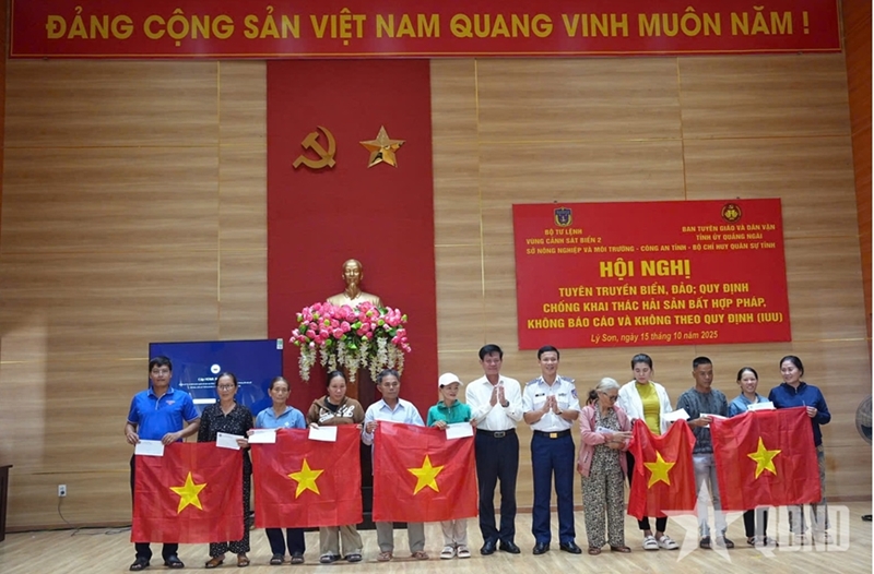 On the same day, at the hall of the Ly Son Special Zone People’s Committee, Coast Guard Region 2 Command, in coordination with the Information, Education and Mass Mobilization Commission of the Quang Ngai Provincial Party Committee, organized a conference on maritime awareness and regulations on anti-IUU fishing. The event also included the presentation of 300 national flags and 80 gift packages to disadvantaged fishermen in the area, helping raise awareness of legal compliance and encouraging responsible, sustainable marine economic development.
