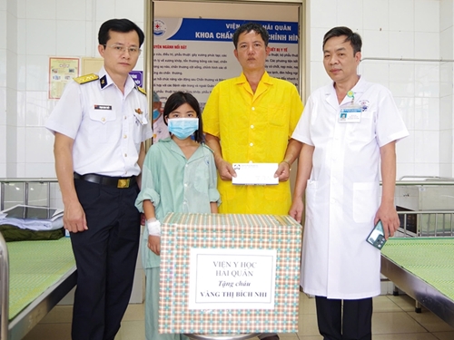Vang Thi Bich Nhi receives gifts from the Naval Medical Institute. |