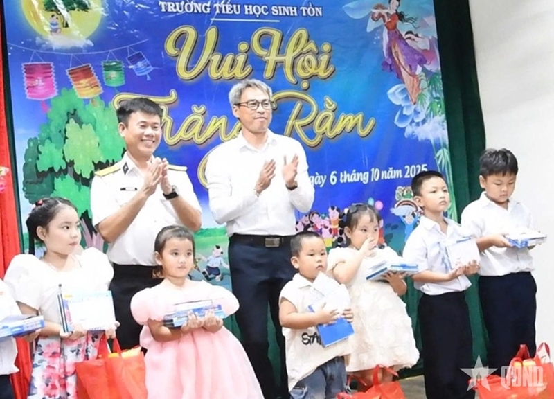 On this occasion, Brigade 146 and Truong Sa Special Zone presented 500 Mid-Autumn gifts to children of officers and staff members currently serving in the Truong Sa Archipelago. Though modest, these gifts carried heartfelt affection from the mainland, conveying encouragement and love, inspiring the children to study well, behave kindly, and be worthy of being Uncle Ho’s good children.