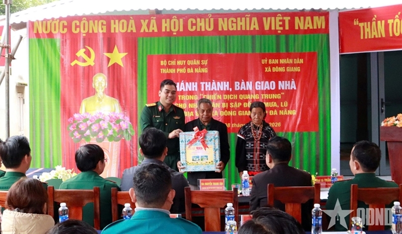 PANO - On January 8, the Da Nang municipal Military Command organized the inauguration and handover ceremony of the first house under “Quang Trung Campaign” to A Rat Bep’s family in A Dieu village, Dong Giang commune.