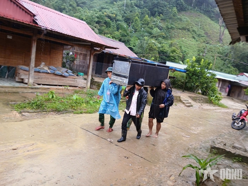 Thirty-three-year-old villager Blao from Voong hamlet said that despite the heavy rain and strong winds, border guard officers and soldiers overcame hardships to help locals relocate and set up safe accommodations.