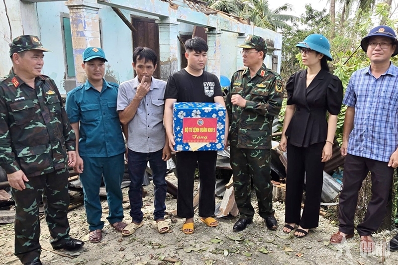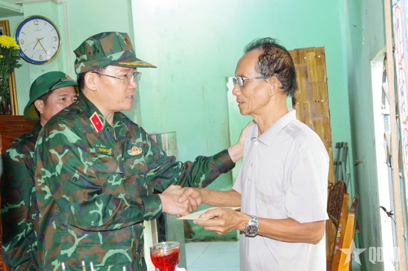 During his inspections at Xuan Loc commune and Song Cau ward, Political Commissar of Military Region 5 Major General Luong Dinh Chung praised troops and other forces for their responsibility and timely and prompt disaster relief support. He urged them to assist people as quickly as possible, working through every spare moment with the highest determination.