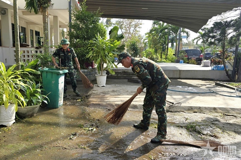 Immediately after the storm, troops from the Defensive Area Command Region 1-Song Cau, Infantry Regiment 888, together with local militia, police forces, and local organizations, quickly spread out to residential areas, schools, and blocked routes to assist residents.