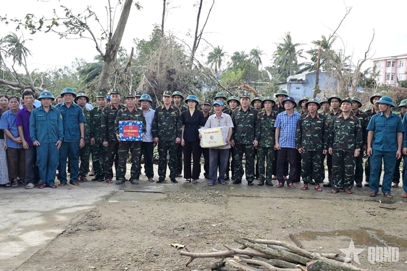 Lam Tuong My, a former soldier of Brigade 162 under Naval Region 4, whose house was completely destroyed, said emotionally that though he lost everything, the soldiers and neighbors came to help and gave gifts, helping warm his heart.