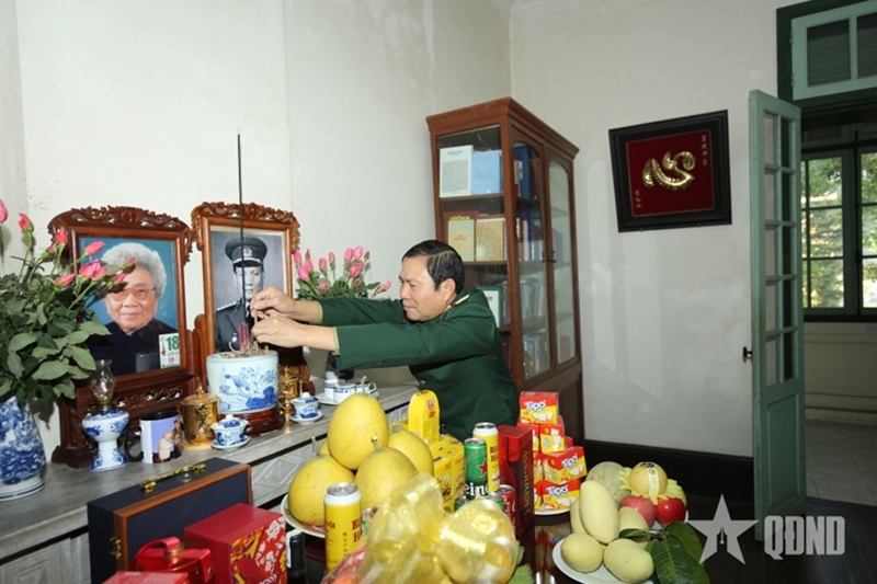 General Nguyen Tan Cuong and the delegation visited the families and offered incense in memory of late Party General Secretary Le Kha Phieu, former Chief of the General Department of Political Affairs; late President Le Duc Anh, former Minister of National Defense; as well as other former Ministers of National Defense, former Chiefs of the General Staff, and former Deputy Ministers of National Defense.