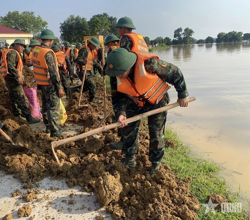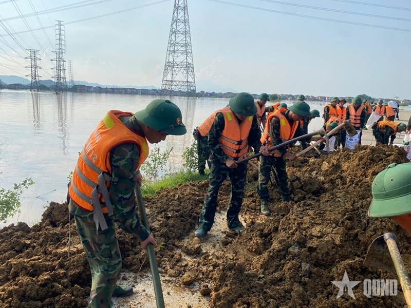 PANO - In response to rising upstream water levels causing localized flooding in parts of Bac Ninh Province, Division 325 under Army Corps 12 deployed more than 500 officers and soldiers, along with vehicles, to assist in disaster recovery efforts in Hop Thinh and Tam Giang communes on October 9, helping local communities stabilize their lives.