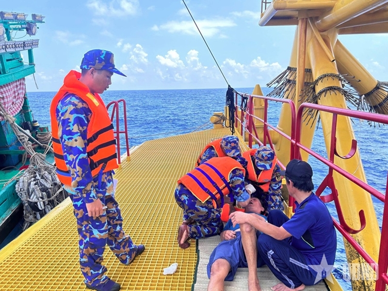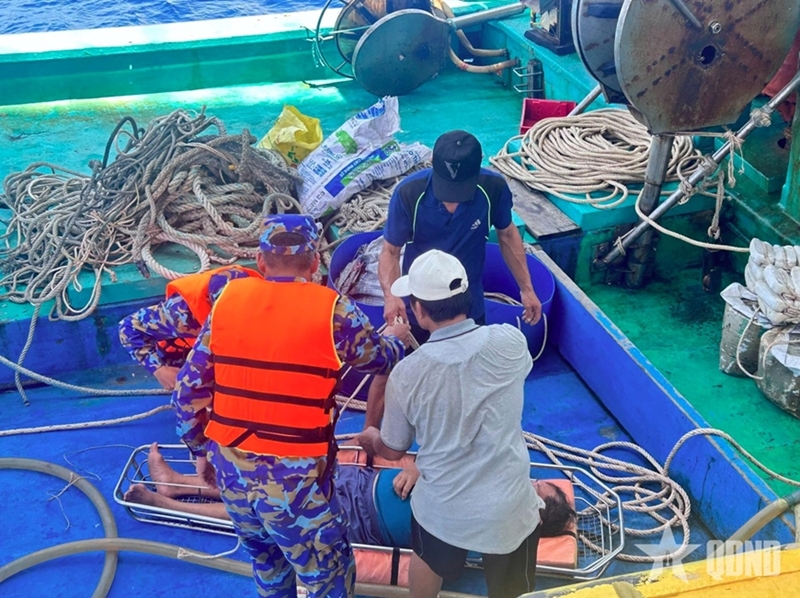 The trawler, captained by To Van Duong, born in 1969 from Hoai Nhon Dong ward, Gia Lai province, reported that a crew-member had been injured.
