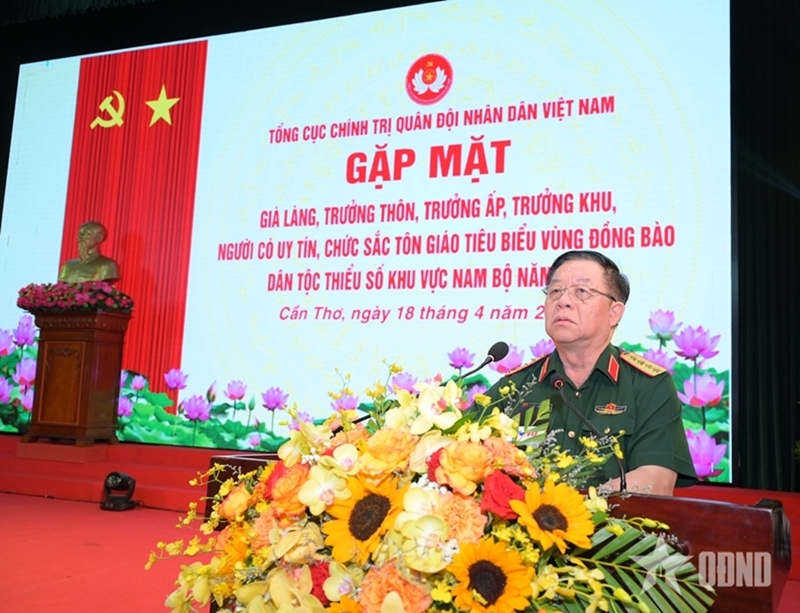 General Nguyen Trong Nghia talks to village patriarchs, community heads, reputable individuals, and religious dignitaries in the South. |
