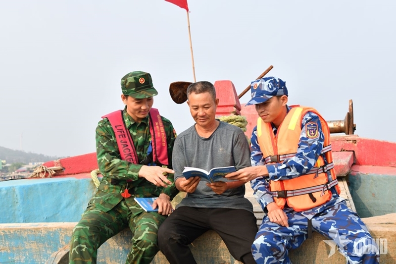 PANO - From March 21 to 22, Task Force No.1 on Drug Crime Prevention and Control of the Vietnam Coast Guard in coordination with the Hai Phong Youth Volunteer Organization and the Youth Union chapter of Coast Guard Station No.1 (under the Coast Guard Region 1 Command), and Border Flotilla 38 (Hai Phong city Border Guard Command), organized law dissemination and activities on combating illegal, unreported and unregulated (IUU) fishing for local people and fishermen in the waters of Bach Long Vi.