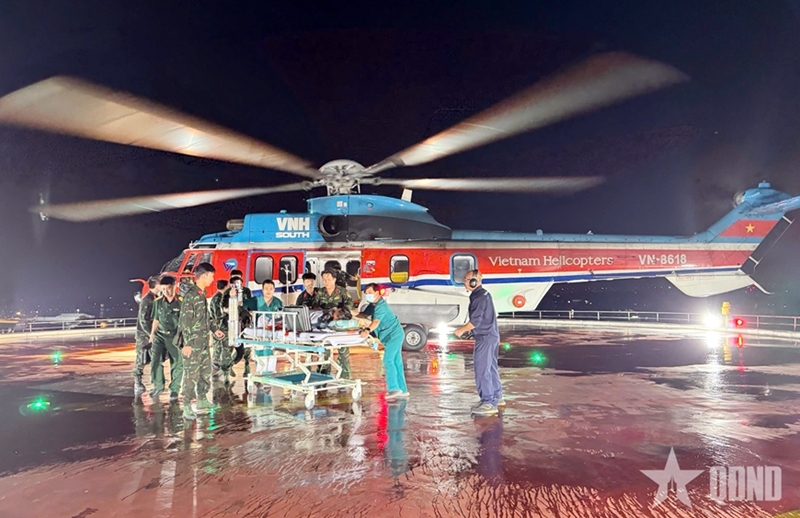 Following orders from the Ministry of National Defense, Corps 18 dispatched an EC-225 helicopter, piloted by Colonel Do Hoang Hai, to fly the aero-medivac team led by Doctor, Major Dinh Van Hong from Military Hospital 175. The team, with advanced medical equipment and an experienced critical-care crew, including an interventional cardiologist, departed from Tan Son Nhat Airport at 4:30 p.m. on October 14.