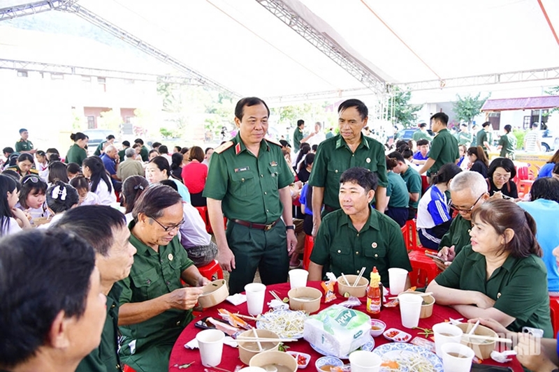 Major General Vu Van Dien and delegates attend the “Military-civilian grateful breakfast” program. |