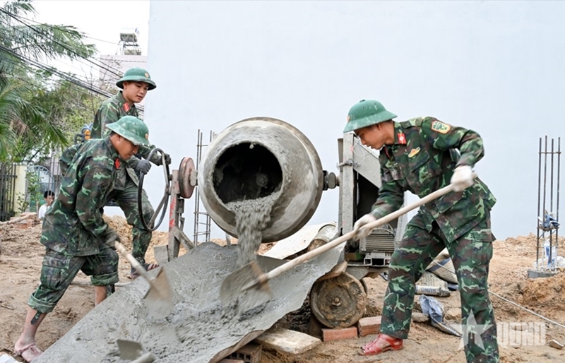 With the spirit of “boldness, decisiveness, and speed,” units under the Army Corps arrived at sites within a day to begin surveying, clearing ground, and transporting materials. The unit’s Command launched a peak emulation drive titled “Rapid maneuver - Rapid construction - Rapid finish,” employing creative measures, such as exemplary leadership by cadres and Party members, and non-stop work shifts. Troops were encouraged to work through harsh weather, day and night, and during weekends and holidays to rebuild homes quickly, effectively, safely, and economically for the needy.