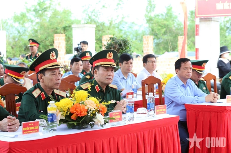 Leaders and commanders of units in the area attend the house handover ceremony for flood victims in Gia Lai province. |