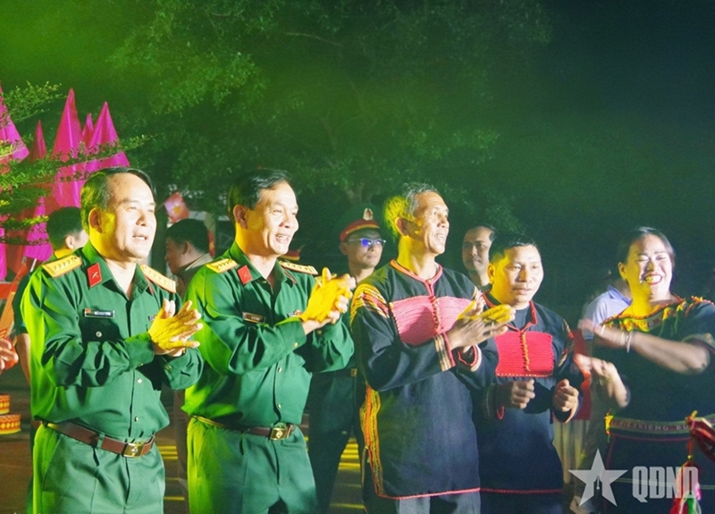 That trust was further reinforced during a cultural exchange, themed “Unwavering military-civilian solidarity, a firm great national unity bloc.” In the vast forests of the Central Highlands, a campfire burned brightly, symbolizing the guiding light of the Party. To the resonant rhythm of gongs, officers, soldiers, and local residents were hand in hand in folk dances, creating a powerful image of unity.