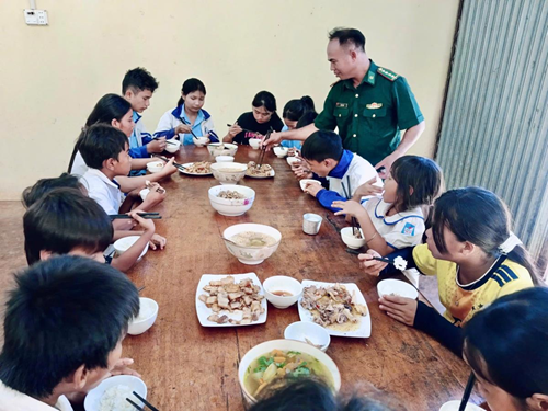Since 2013, the working group of the border post has coordinated with local authorities of Ia Dom commune, other units and schools in the locality to encourage needy families or those living far from the center to allow their children to come to the unit for eating and resting after school in the morning.