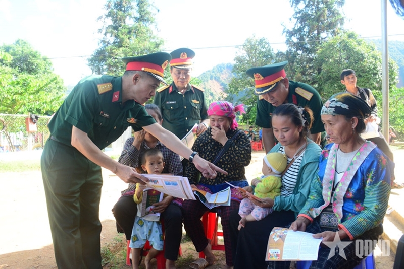 In Xa Dung commune, the unit’s medical team, and local doctors and healthcare workers checked health, gave advice, medicine and gifts to 100 flood-affected residents, disadvantaged households, policy beneficiaries, and elderly people in need. Additionally, the Dien Bien Provincial Military Command organized legal education for residents.
