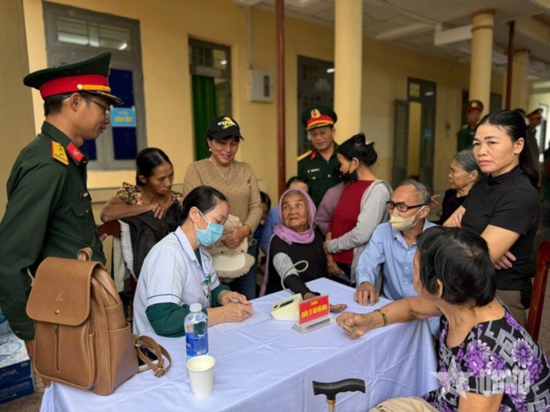 Doctors and medical staff of Military Hospital 17 provide medical examinations and health consultations for residents of Van Tuong Commune. |