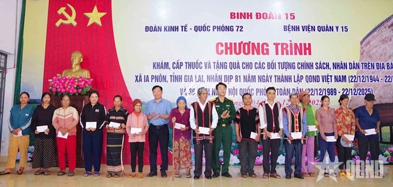 On this occasion, Defense-Economic Unit 72 and Military Hospital 15 also presented 85 gift packages to village elders, village heads, policy beneficiary families, people with meritorious service to the revolution, and poor households in the area, reflecting the affection and responsibility of military personnel toward people living along the border.