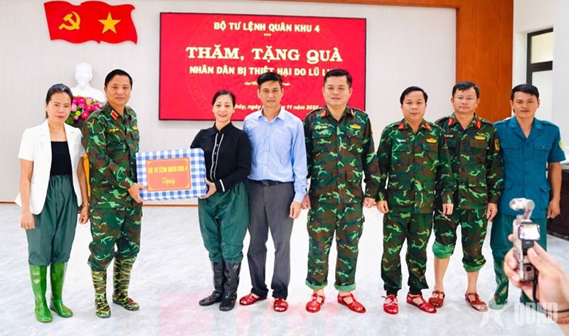 Expressing deep sympathy for local Party committees, authorities, and residents, the Commander of Military Region 4 affirmed that officers and soldiers of Military Region 4, with determination not to let anyone suffer from hunger or cold after the floods, will always stand side by side the people and be ready to provide support in any circumstance.