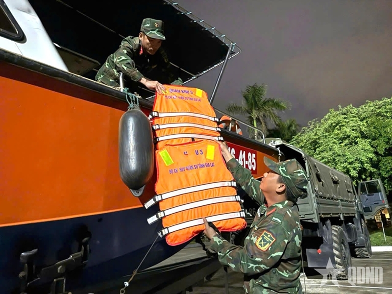 Officers and soldiers of the Gia Lai Provincial Military Command prepared to be deployed to high-risk areas to respond to Typhoon No.13 |