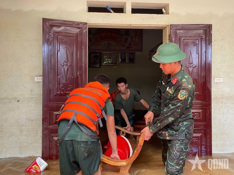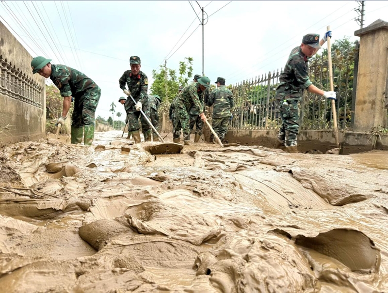 Also on October 3, hundreds of troops from Regiment 877 and the Border Guard Command under the Tuyen Quang Provincial Military Command joined local efforts to restore schools, enabling students to return to class and helping residents repair homes and clean up to resume normal life.
