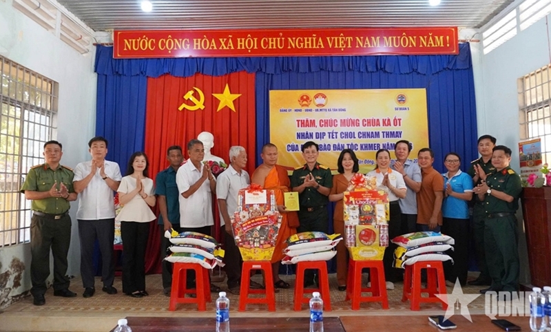 Military Region 5’s Division 5 presents gifts to Khmer people and disadvantaged people in Tay Ninh province, April, 2026. |