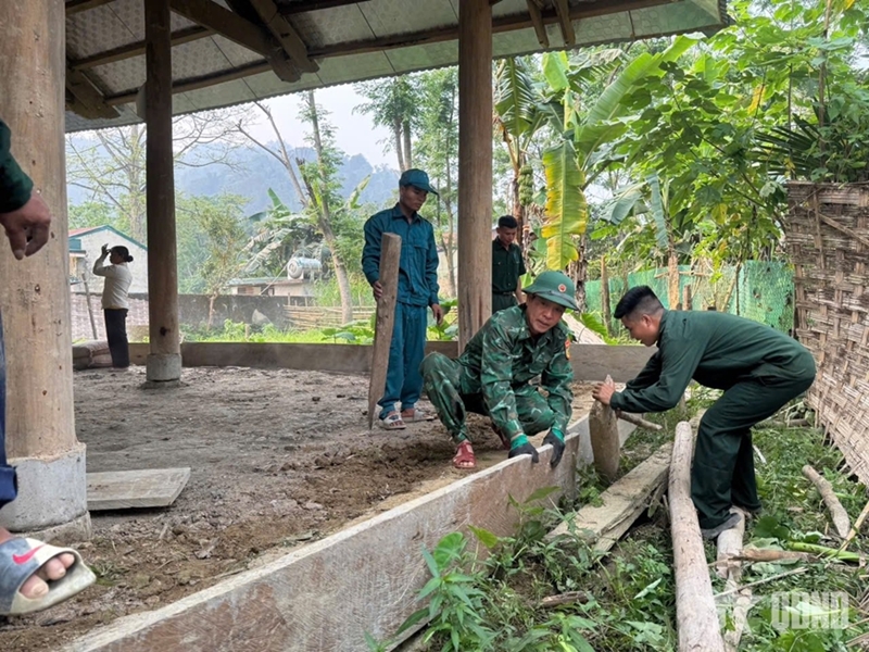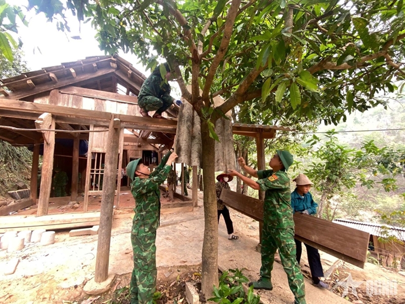 This scene is common across Nghe An’s border areas. In Xop Phe village, Muong Ai Border Post personnel helped Moong Pho Nhuan dismantle a deteriorating shelter to prepare for new construction. Lieutenant Colonel Ngo Quang Hieu, Political Officer of Muong Ai Border Post, stated that such assistance is a routine responsibility, focusing on housing, infrastructure, and production to strengthen military-civilian ties.