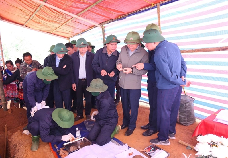 The search and collection team of the Thanh Hoa Provincial Military Command recovers martyrs’ remains. |