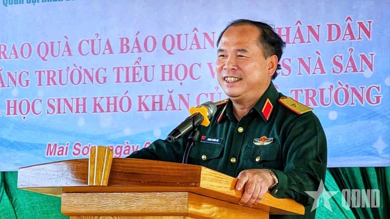 Major General Doan Xuan Bo said he was happy with the development and progress of Mai Son commune, and the recent achievements in management, teaching and learning of the staff, teachers and students of Na San Primary and Secondary School.