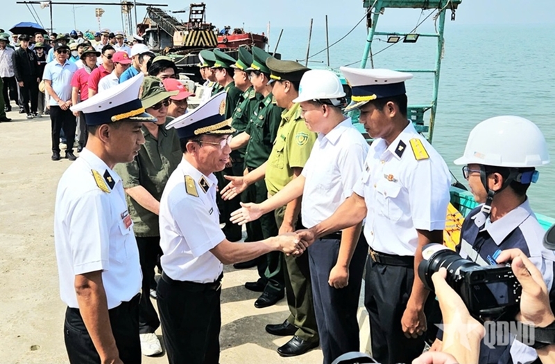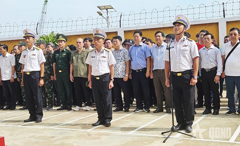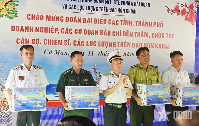 On the island, the working delegation, led by Rear Admiral Ngo Van Thanh, Secretary of the Party Committee and Political Commissar of Naval Region 5, attended an early-year flag-raising ceremony, during which, they, together with troops, proudly sang the national anthem amidst the sound of waves. Addressing the ceremony, Rear Admiral Ngo Van Thanh commended on-duty forces on Hon Khoai Island, and hoped that they would overcome difficulties, strengthen solidarity, and successfully fulfill all assignments, particularly during the upcoming Tet.