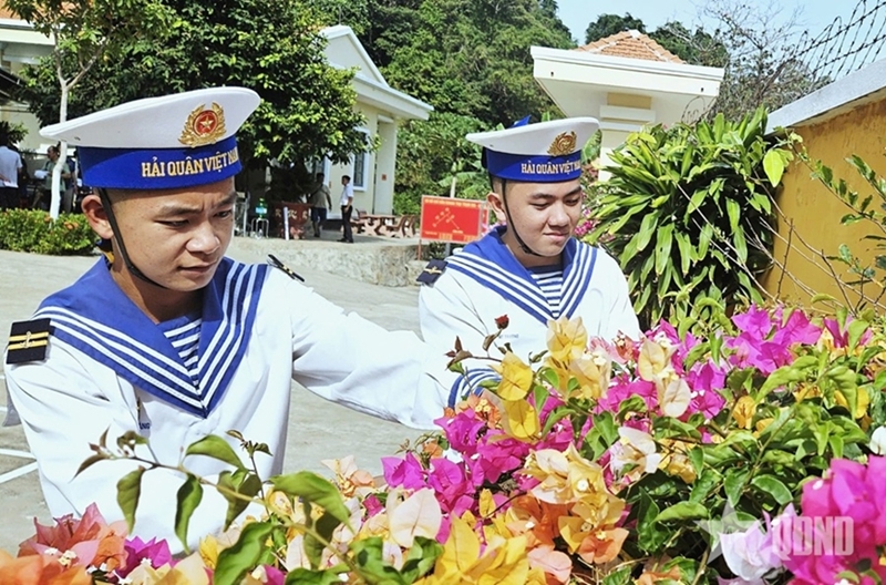 “Welcoming the delegation to extend New Year greetings, we truly feel as if we have already seen spring. We sincerely appreciate the sentiment and support from people nationwide and businesses who always turn their hearts toward soldiers and forces performing duties in the difficult and harsh conditions of the Southwestern region of the Fatherland,” Non-commissioned Captain Quach Ra Sin, member of Radar Station 595, Regiment 551, Naval Region 5, said emotionally.