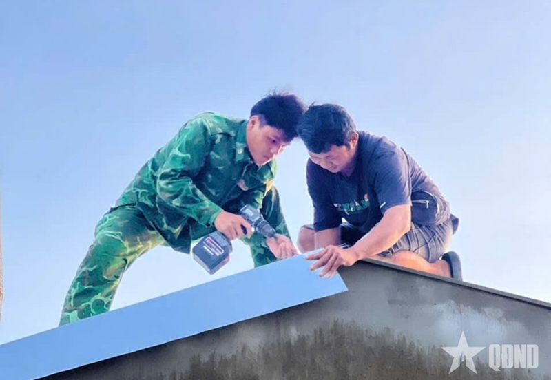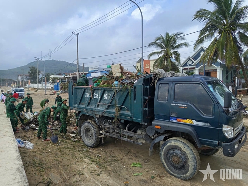 At coastal border posts, namely Sa Ky, Duc Minh, Pho Quang, and Sa Huynh, the task forces worked with local militia, police forces, and authorities to re-roof houses, clean up homes, collect damaged belongings, clear roads, and sanitize schools and medical stations.
