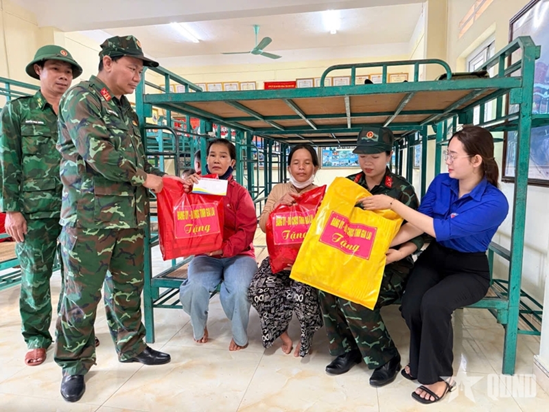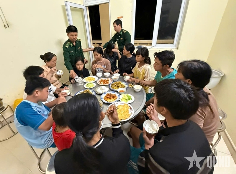 Sharing the hardships of the villagers, troops from Cat Khanh Border Post of the Border Guard Command under the Gia Lai Provincial Military Command quickly rearranged their facilities, opened their barracks, and welcomed the displaced families to take shelter.