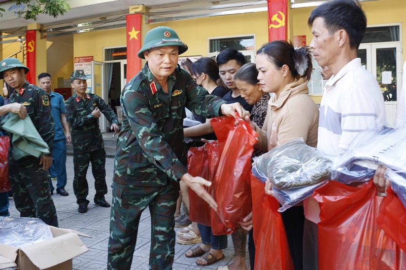 * Also in the afternoon, authorized by the Central Military Commission and the Ministry of National Defense, a delegation from Military Region 1, led by Major General Do Van Tuan, Deputy Commander of the military region, handed over relief supplies to Nam Hoa commune, Thai Nguyen province. The delegation presented 200 mosquito nets, 200 blanket covers, and 50 sets of civilian clothes to local people. Thai Nguyen province also received supports and distributed 4,000 mosquito nets, 4,000 blanket covers, and 1,000 sets of civilian clothes to 20 communes and wards heavily affected by Typhoon Matmo (Storm No.11).
