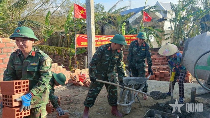 Apart from house-building, troops have guided residents on storm and flood prevention, environmental sanitation after floods, assisted in clearing waste, and unblocking drainage systems, helping stabilize community life in hamlets and communes.