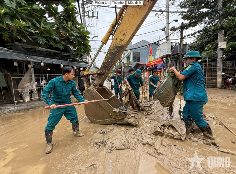 Senior Colonel Truong Thanh Quang, Deputy Political Commissar of the Military School of Military Region 5, said that in addition to cleaning main streets and schools, nearly 100 officers and soldiers were deployed to assist policy families and the elderly. Military engineers and electricians were also helping residents inspect and repair flood-damaged electrical and water systems.