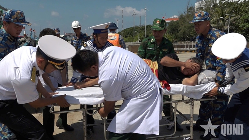 The patient, named La Van Tru, 60 years old from Hoai Nhon Dong ward, Gia Lai province, is a crew-member of fishing trawler BD 97863 TS, captained by Ton Van Duong from Hoai Nhon ward, Gia Lai province. The vessel departed on March 7 and the patient was brought to the infirmary at 2:00 on March 30.