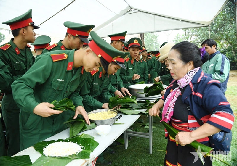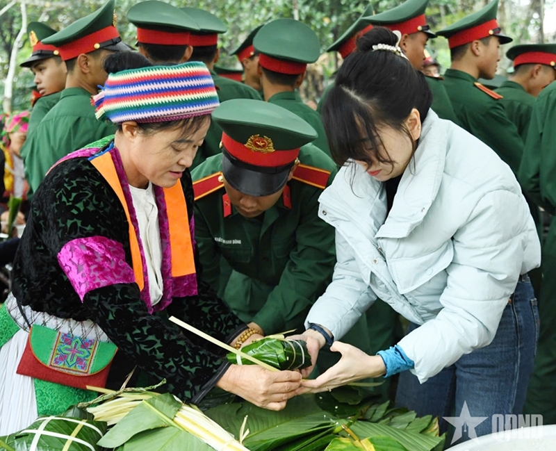 The program featured a variety of activities, including Tet booth decoration contests, traditional square glutinous rice cake (banh chung) making, flower arranging, and folk games. These activities helped boost morale, raise a sense of responsibility, and strengthen determination among officers and soldiers to successfully fulfill assigned missions.