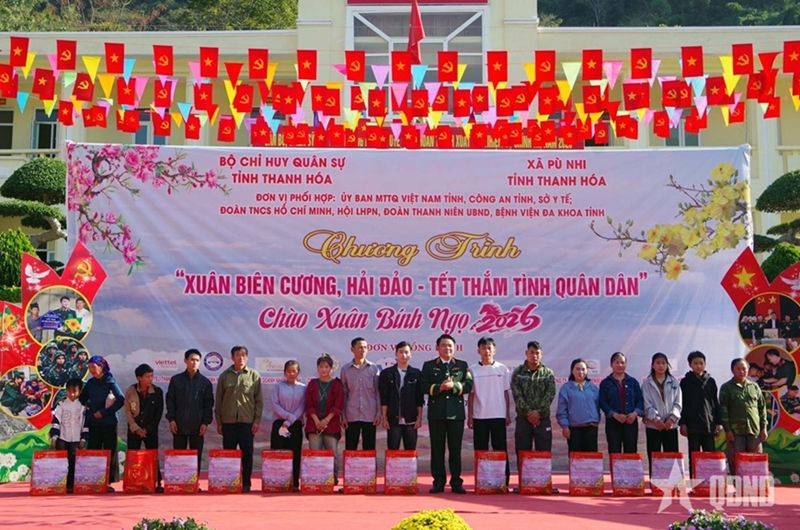 * On February 6-7, the Thanh Hoa Provincial Military Command and partners held the 2026 “Spring at the Border and Islands – Tet Strengthening Military-Civilian Bonds” program at Pu Nhi Border Station. Major General Vu Van Tung, the Command's leader, attended alongside provincial officials, businesses, and local authorities. Recently, the Command has mobilized various sectors to support soldiers and residents in border and island regions through this initiative.