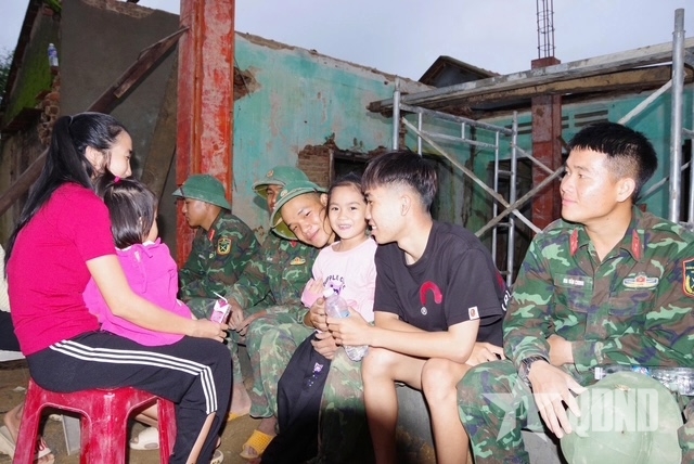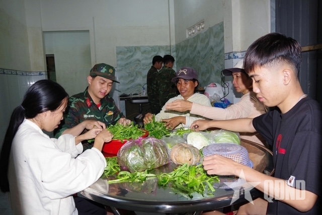 Although the floods swept away property and left behind pain and loss, they also revealed the resilience of community bonds. Officers and soldiers were warmly received, with women helping with cooking and young people joining construction efforts. For the troops, this was not merely an assigned mission but an expression of kinship and shared responsibility with the people.