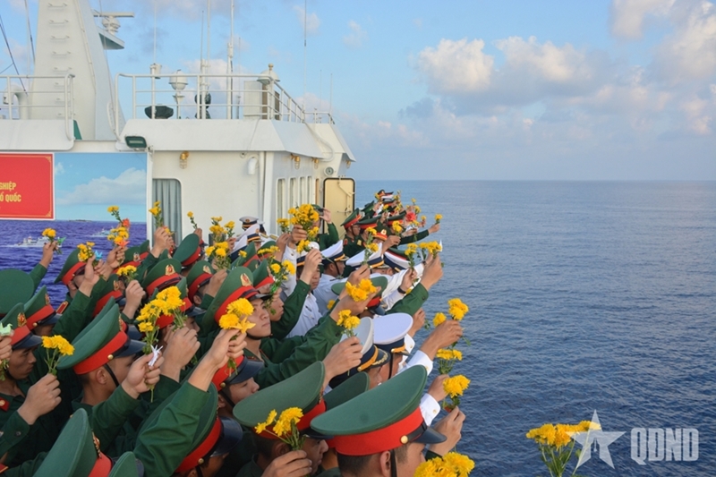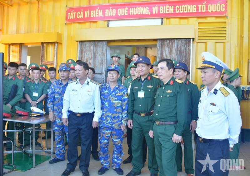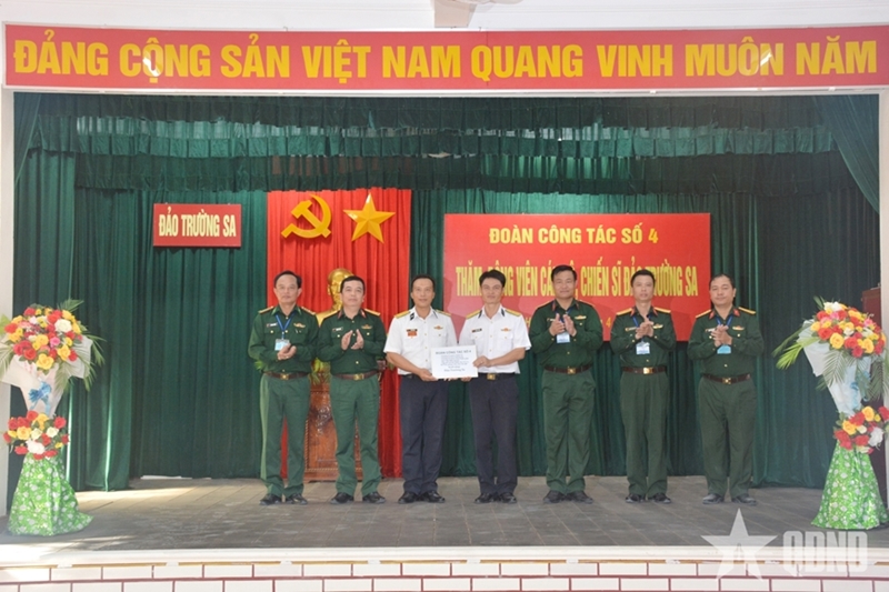During the week-long voyage, the delegation visited and encouraged troops and residents on Song Tu Tay (Southwest Cay), Son Ca (Sand Cay), Da Thi (Petley Reef), Sinh Ton Dong (Grierson Reef), Len Dao (Lansdowne Reef), Da Tay (West Reef) B, Truong Sa (Spratly) islands, and DK1/17 platform.