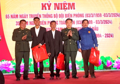 The Border Post of La Lay International Gate presents gifts to Ho Van Teo (second from left) and other families having donated land for the building of a checkpoint on the occasion of the 65th founding anniversary of the Vietnam border guard force (March 3, 1959 - 2024) and the 35th anniversary of the Whole People’s Border Guard Festive Day (March 3, 1989 – 2024). |