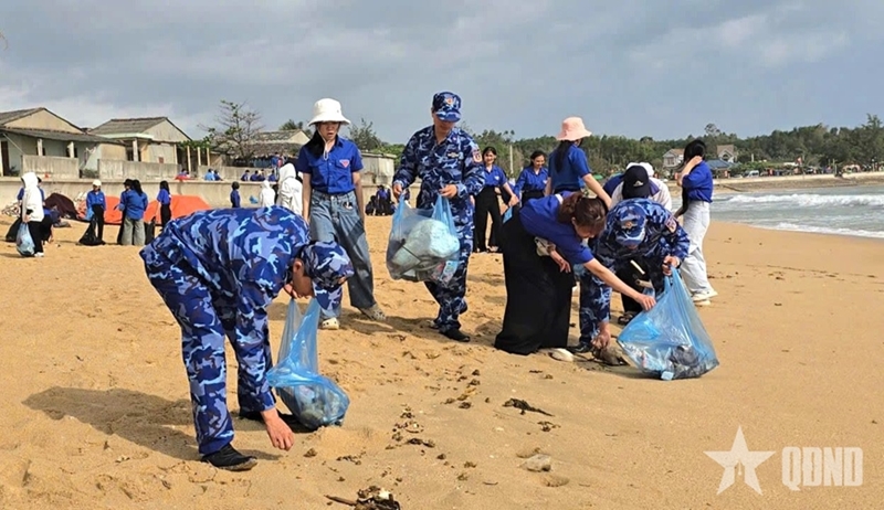 Along coastal areas bordering the units and local roads, youth union members collected, sorted, and processed more than two tons of waste, particularly plastic waste, nylon bags, and foam buoys washed ashore. At agencies and units, youth members also cleared bushes, dredged drainage ditches along internal roads and wharf areas, and renovated flower beds and ornamental plants, helping create a “bright, green, clean, and beautiful” environment throughout the barracks.