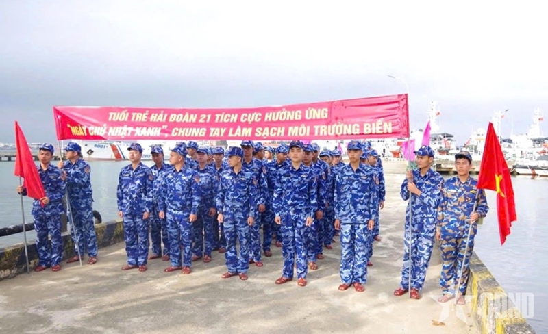 Captain Nguyen Tien Hung, Secretary of the Youth Union of Coast Guard Ship CSB 6001 under Squadron 211, Flotilla 21, said that “Green Sunday is not merely a labor activity but also an opportunity for youth members to recognize their responsibility toward the nation’s sea and islands.” He added that the image of young people in blue shirts working alongside coast guard personnel creates a vibrant and inspiring impression among local residents.