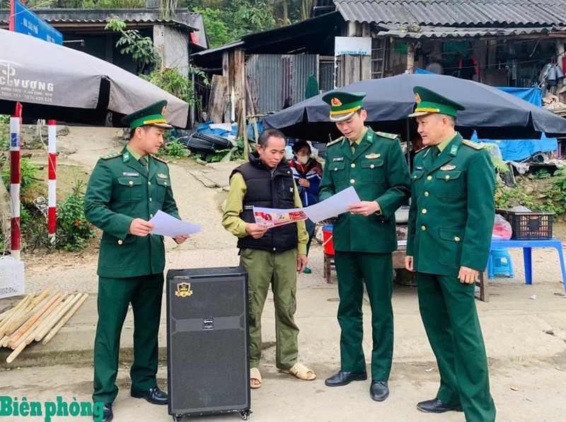 Officers and Youth Union members of Nghia Thuan Border Post under the Tuyen Quang provincial Border Guard Command actively disseminate legal information to residents in border areas. |