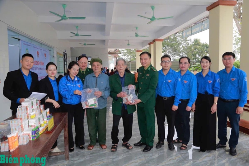 The “Youth Volunteer Intellectuals” program, co-organized by youths of the Ha Tinh provincial Border Guard Command, Hoa Hai Border Post, Ha Tinh Medical College, and Huong Binh commune Youth Union chapter, hands over 10 gifts to poor households. They also donate a “Youth flag Road” project featuring 500 flags and provided free health check-ups and medicines to 100 households, with a total cost of around VND 35 million. |
