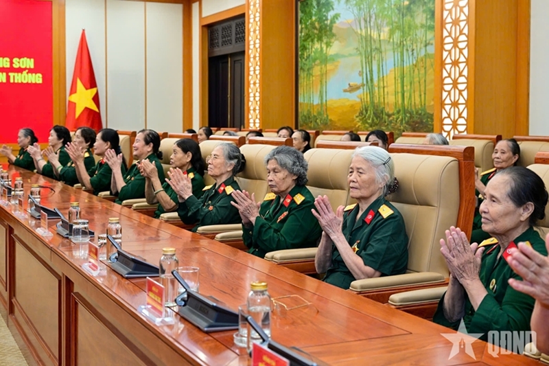 Speaking at the meeting, on behalf of the Central Military Commission and the Ministry of National Defense, General Phan Van Giang extended his warm greetings, heartfelt congratulations, and deepest gratitude to the former female Truong Son drivers; hoped that they will continue to serve as torches of tradition, sharing with younger generations their moving stories of the spirit that “the heart may stop beating, but the hands never leave the wheel,” of patriotism, and of unshakable faith in the Party, the military, and the triumph of the revolution. He emphasized that the spirit and character of the female Truong Son drivers remain invaluable moral assets, nurturing self-reliance, resilience, and the aspiration to rise.